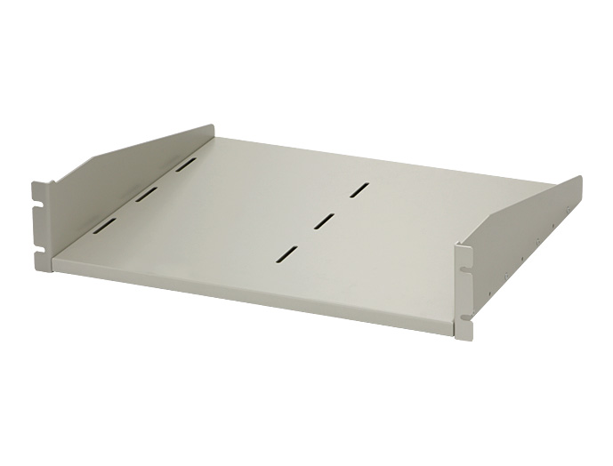 ノーマルタイプと、放熱穴付タイプの2種類の、19インチパネルマウント型の収納棚(棚板)