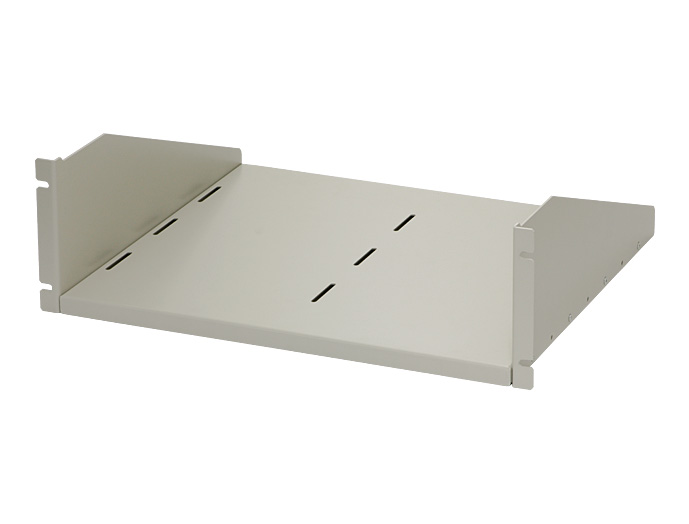 ノーマルタイプと、放熱穴付タイプの2種類の、19インチパネルマウント型の収納棚(棚板)