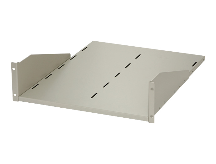 ノーマルタイプと、放熱穴付タイプの2種類の、19インチパネルマウント型の収納棚(棚板)