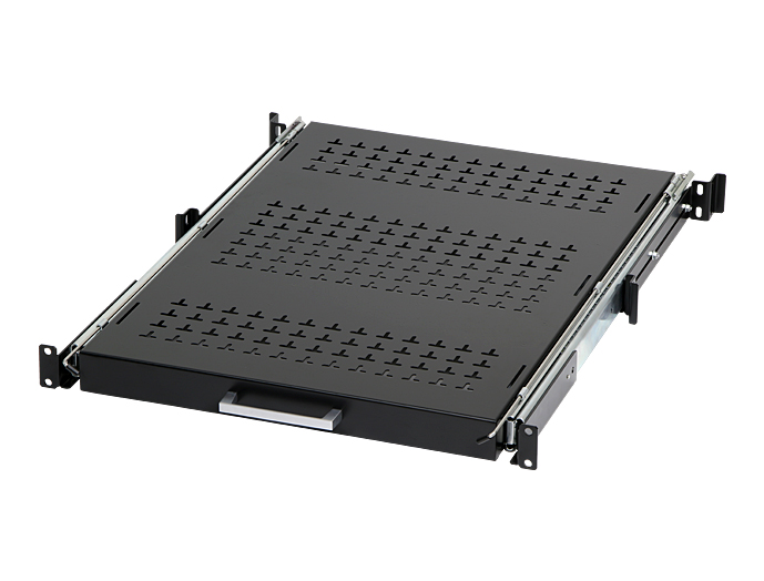 ●19インチラックに前後マウント等で取り付けることができるスライド式の棚です。