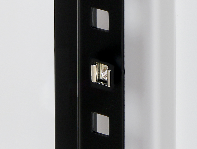 四角穴に、別売のケージナット(NPOシリーズ)をはめ込むことにより、ねじ穴を設けることができます。