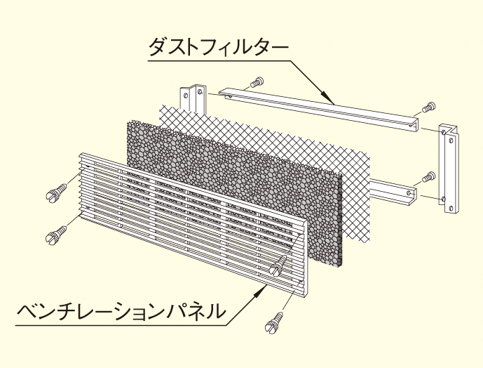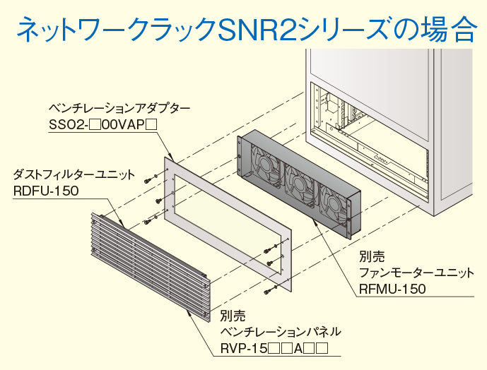 ●ダストフィルターユニット(RDFU-□□□)、及びファンモーターユニット(RFMU-□□□)が取り付けできます。