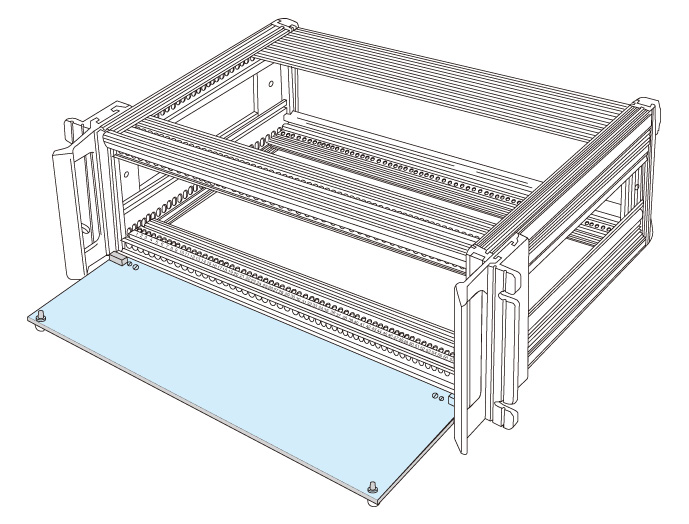 ●カードガイドを取り付けるとき、前端はフロントWフレームに取り付けますが、後端はガイドフレームに取り付けます。このガイドフレームを前後方向、任意の位置にて取り付ける場合に用います。